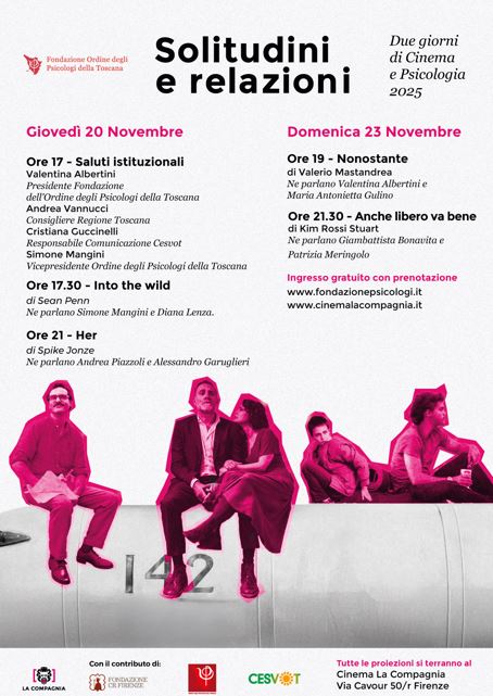 Si chiama Solitudini e Relazioni – Due Giorni di Cinema e Psicologia, la rassegna promossa dalla Fondazione Ordine degli Psicologi della Toscana insieme all’Ordine degli Psicologi della Toscana, con il contributo di Fondazione CR Firenze e la collaborazione di Cesvot.