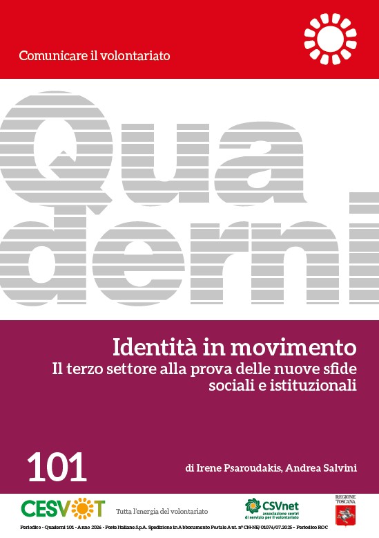 Il volume Identità in movimento. Il terzo settore alla prova delle nuove sfide sociali e istituzionali si inserisce nel filone di studi promosso da Cesvot e realizzato con l’Università di Pisa, con Irene Psaroudakis e Andrea Salvini, offrendo uno sguardo approfondito sul presente, e sul futuro, del volontariato e del terzo settore in Toscana.
